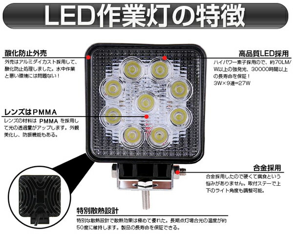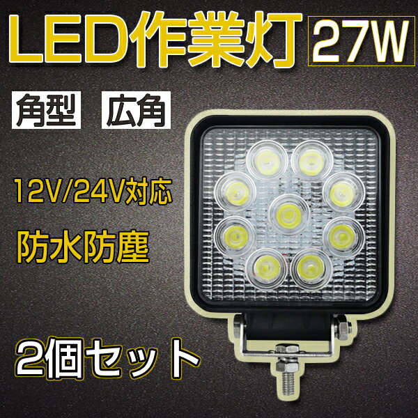 led作業灯 ワークライト 27W 防水 防塵 12v led作業灯 24v LED投光器 夜釣り トラクター用 広角照射 除雪車 船舶 トラック 各種作業車 倉庫内 屋外の現場 角型 10個セット